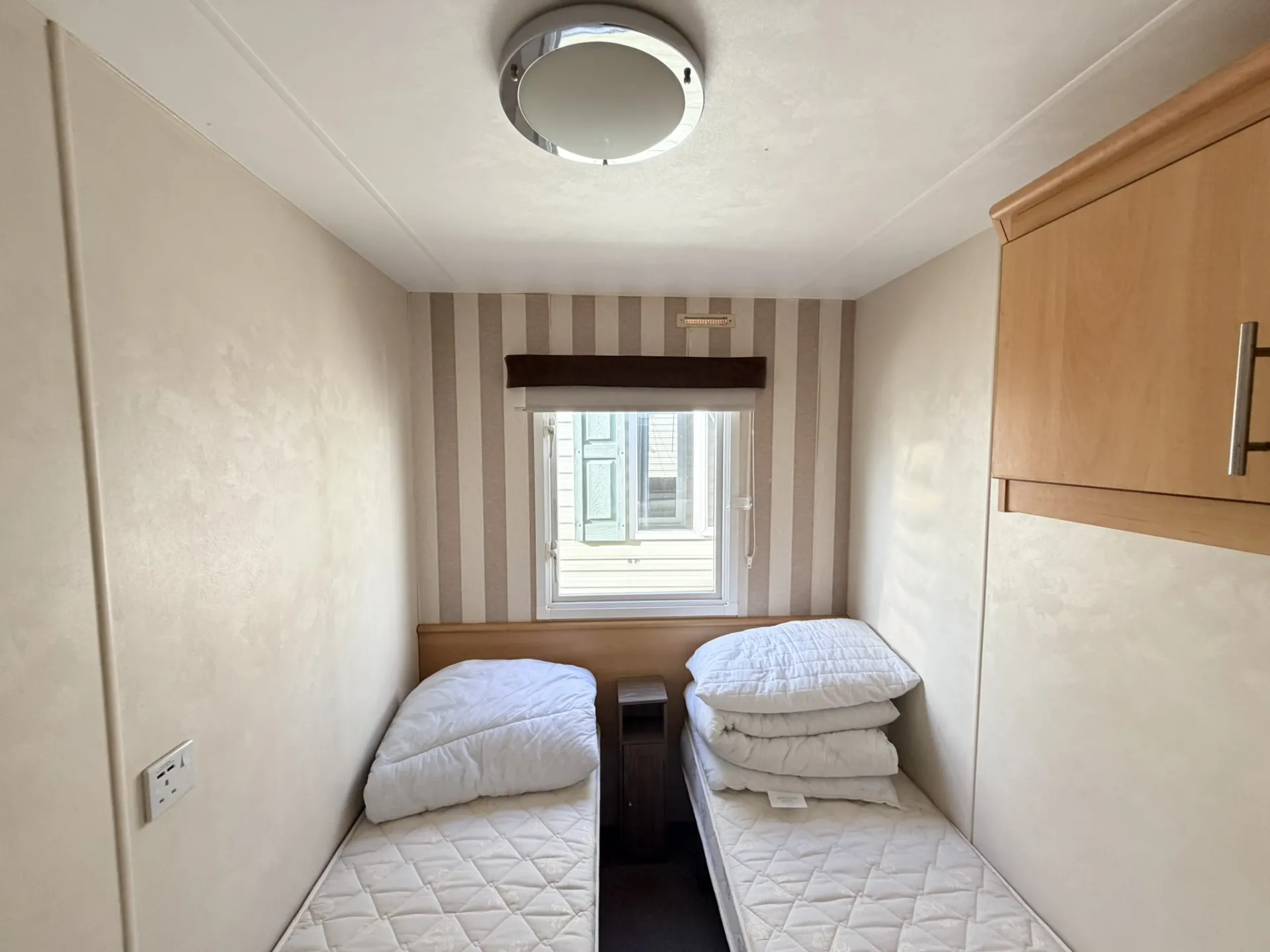 Dům disponuje třemi samostatnými ložnicemi a prostorným obývacím pokojem propojeným s kuchyní, což vytváří vzdušný a funkční interiér. Hlavní ložnice je doplněna o praktické úložné prostory, menší pokoje pak poslouží jako dětské nebo hostinské.