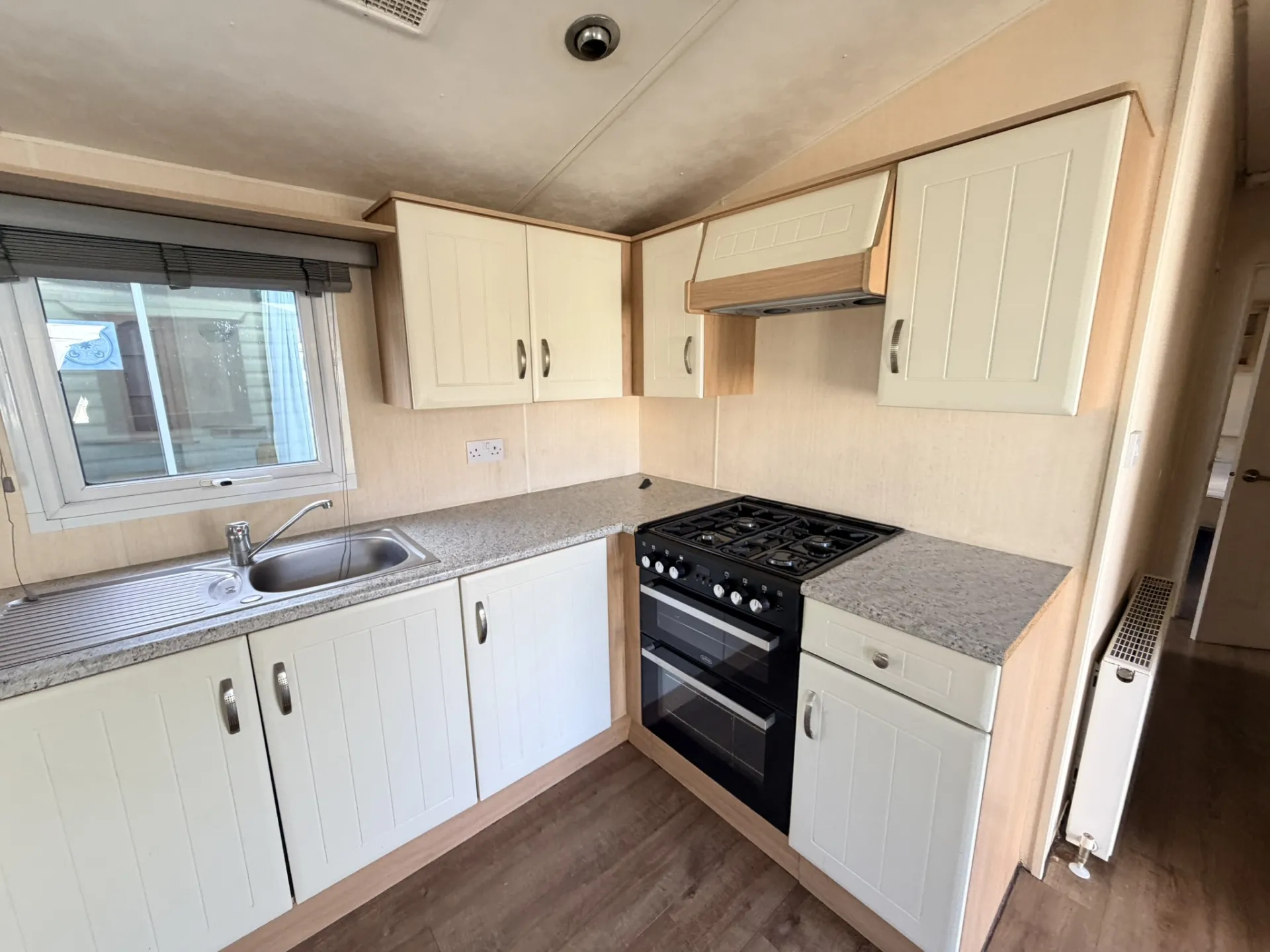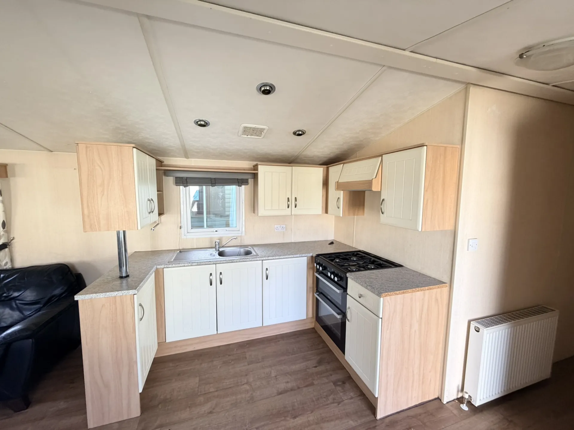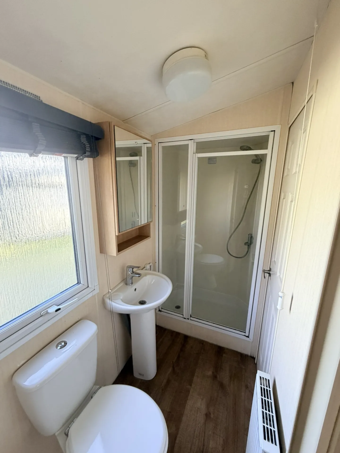 Krásný, kompletně vybavený celoroční mobilní dům Europa Hexham o rozměru 11,5 × 3,7 m s jedním vchodem; po celém obvodu jsou plastová okna s izolačními dvojskly v plastových rámech, která zlepšují tepelný komfort i útlum hluku; centrální vytápění zajišťuje plynový kotel na PB s rozvodem radiátorů pro rovnoměrné teplo v celém domě; světlý obývací prostor s velkými okny plynule navazuje na praktickou kuchyňskou linku s pracovní plochou a úložnými skříňkami a na jídelní kout; v hygienickém zázemí je koupelna se sprchovým koutem, umyvadlem a WC, doplněná o 1× samostatné WC na chodbě; klidovou zónu tvoří 1 větší ložnice (s dostatkem úložných skříní) a 2 další pokoje vhodné jako dětské/hostinské/pracovna – celkem 6 lůžek; dispozičně řešení 4+kk, vzdušný interiér, praktické úložné prostory a díky dvojsklům a radiátorům příjemné klima i v chladnějších dnech – dům je připraven k okamžitému užívání.