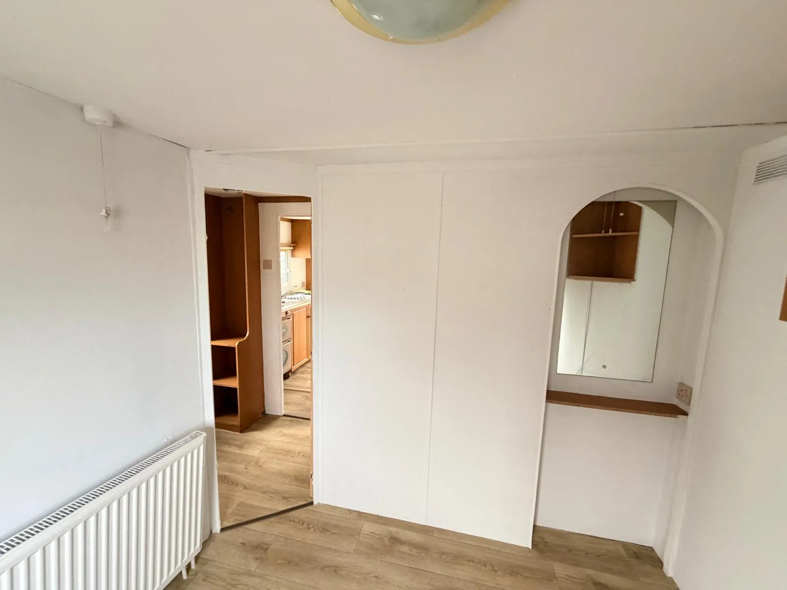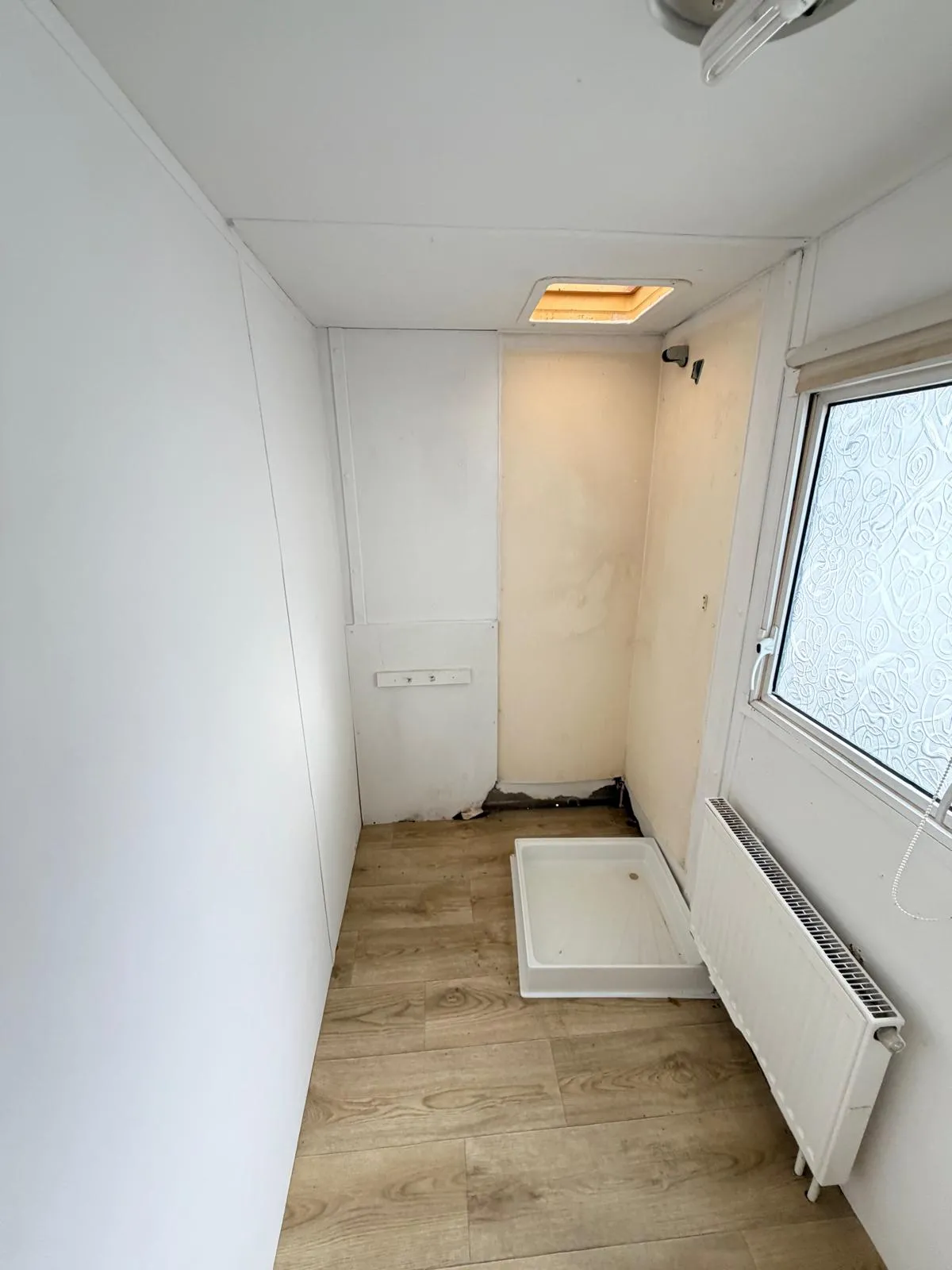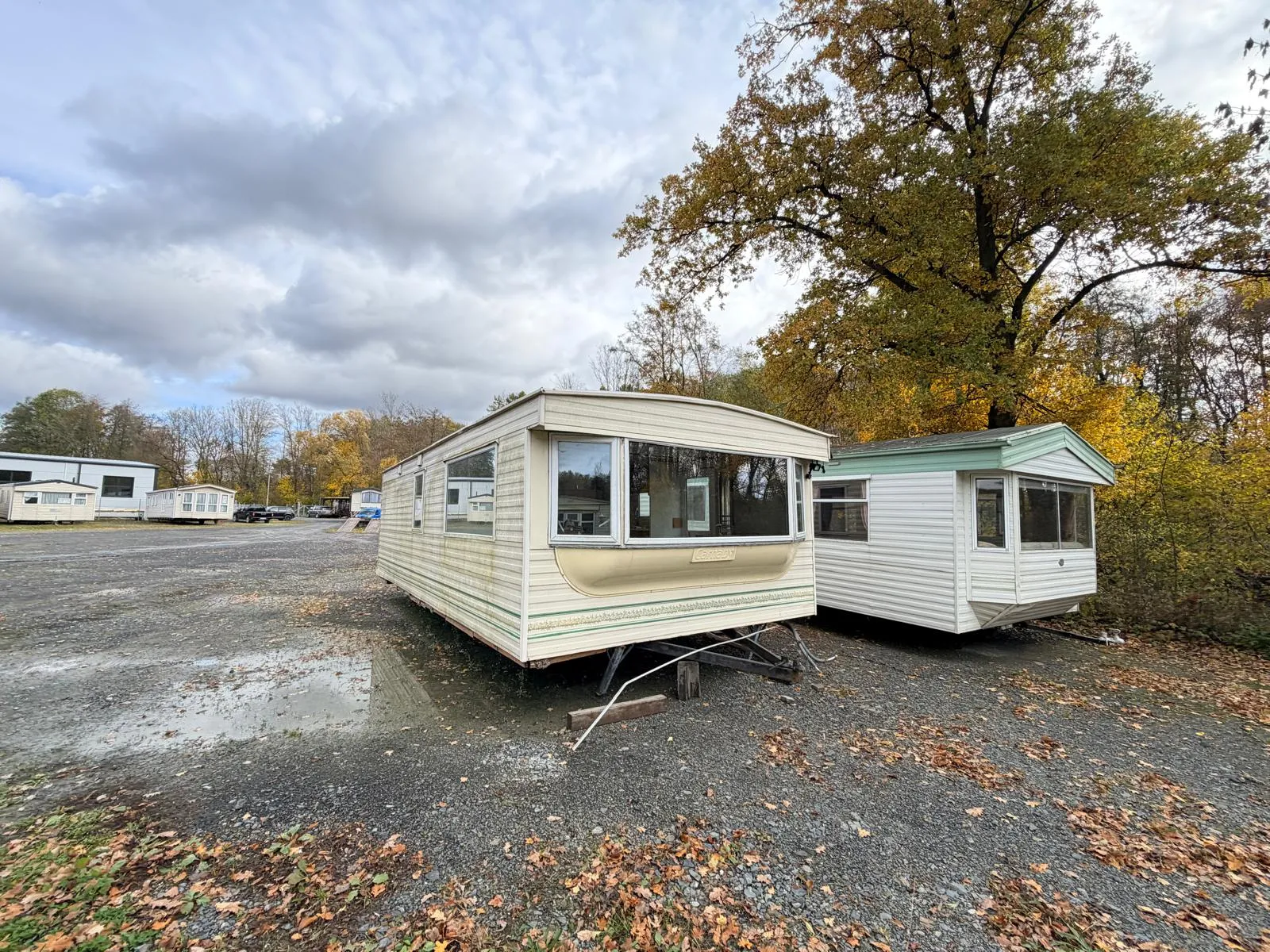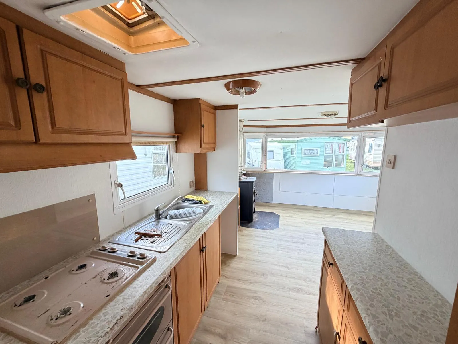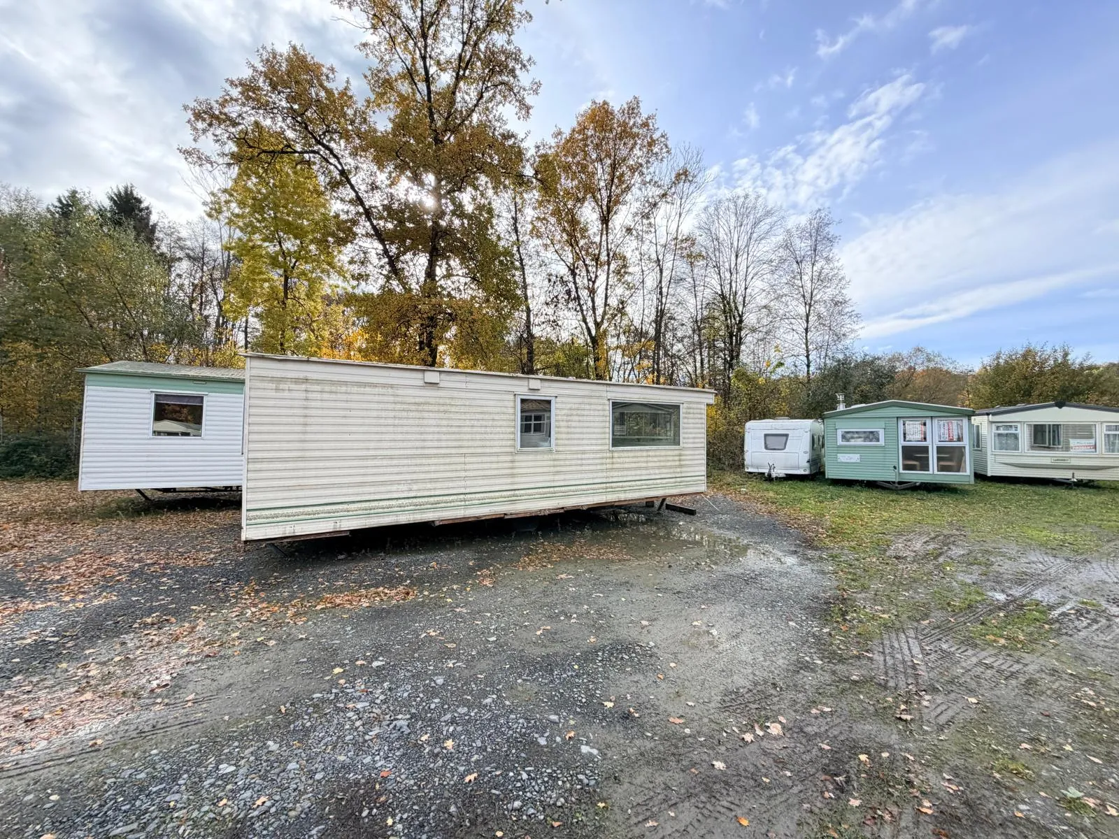 Dispozici doplňují dvě samostatné ložnice a obytná část, ve které je nově položeno linoleum a provedena čerstvá výmalba, takže působí čistým a upraveným dojmem. Koupelnu je nutné dokončit, což z tohoto mobilního domu dělá ideální volbu pro kutila, který si interiér dotvoří podle vlastních představ.