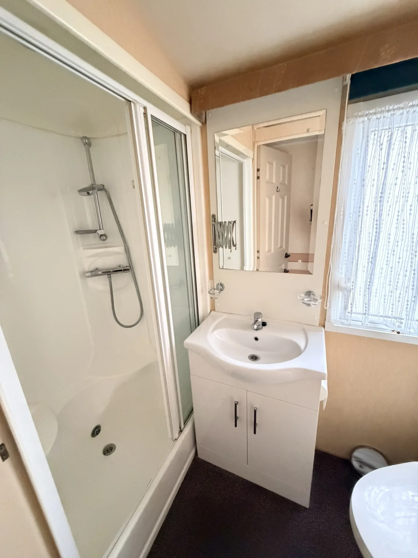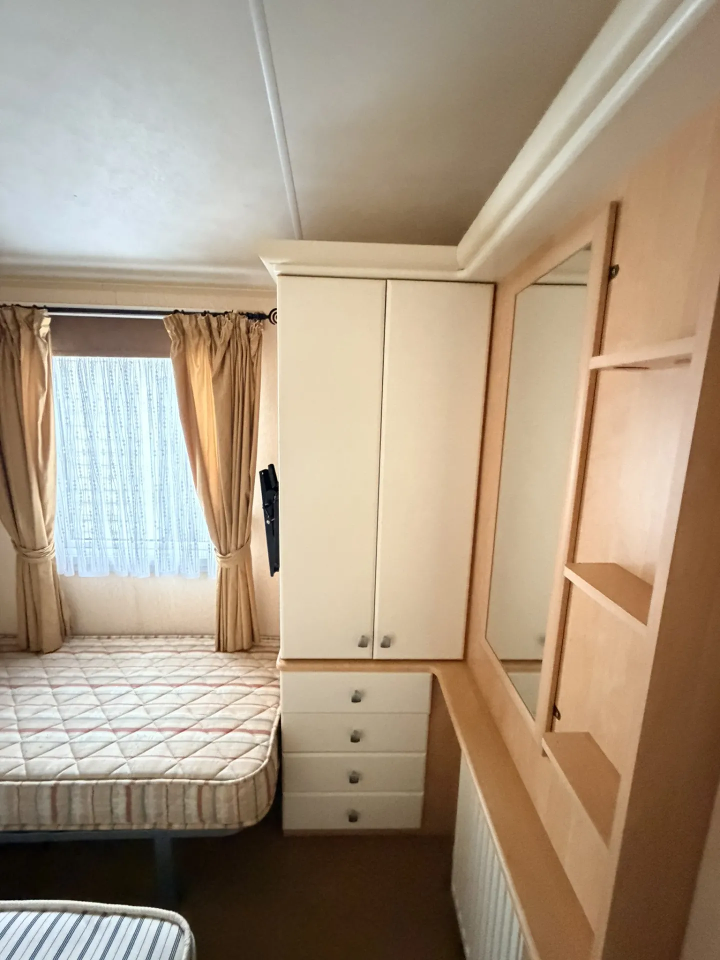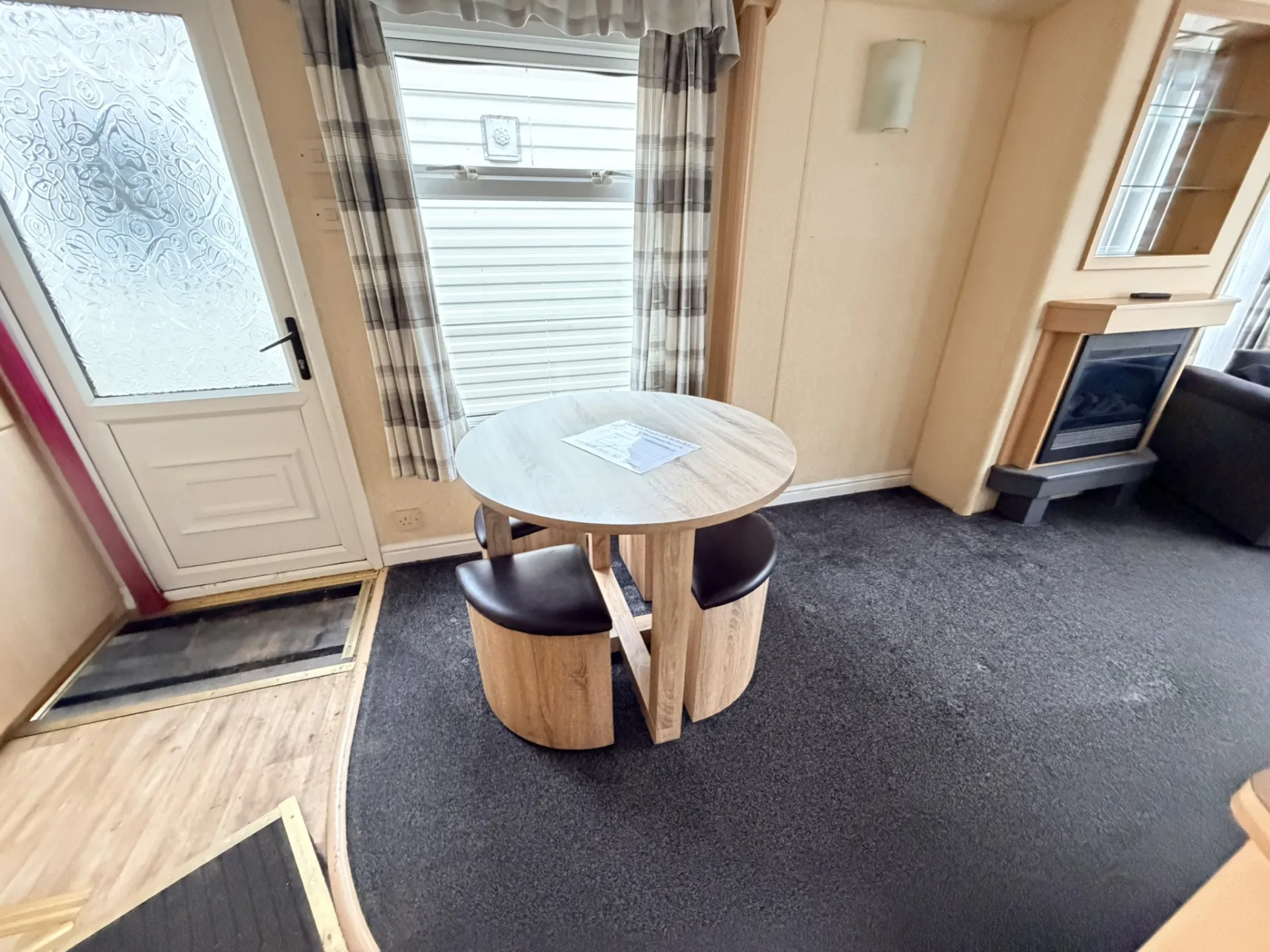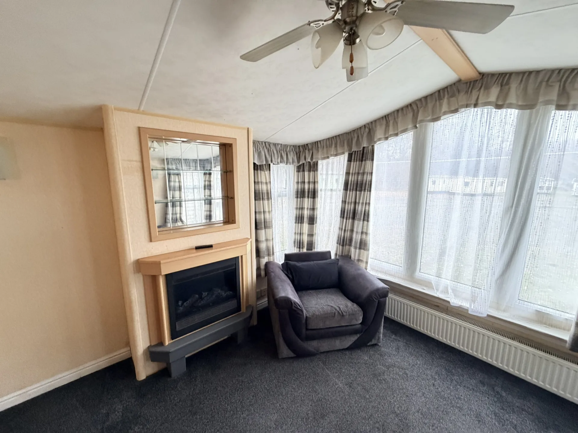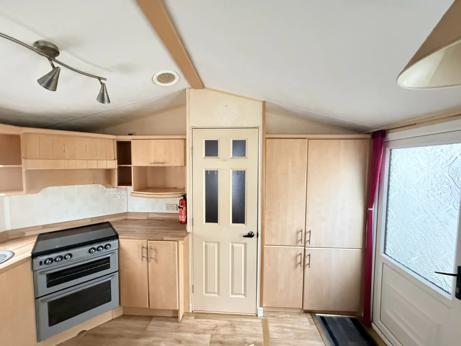 Prostorný a vzdušný celoroční mobilní dům Willerby Aspen 3+kk po prvních majitelích zaujme velkorysým obývacím prostorem, zvýšenými stropy a praktickým uspořádáním. Díky plastovým oknům s izolačními dvojskly a centrálnímu plynovému topení ve všech místnostech nabízí příjemné bydlení s dostatkem komfortu. Hlavní vstup vede do světlého obývacího pokoje, který plynule navazuje na velkou kuchyň ve tvaru „U“ vybavenou spotřebiči – lednicí, mrazákem, plynovou troubou, mikrovlnnou troubou a nerezovým dřezem.