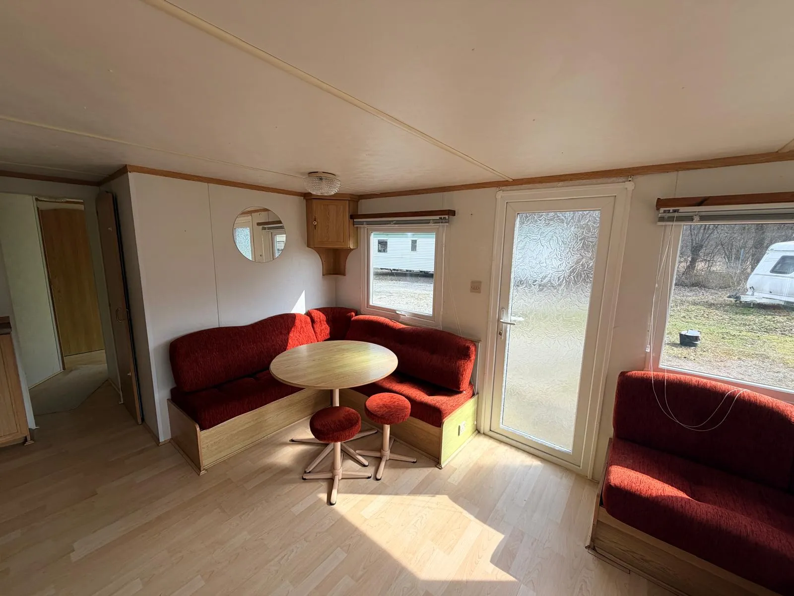 Mobilní dům Carnaby Centennial zaujme praktickým uspořádáním interiéru, příjemným obytným prostorem a rozměry 9,5 × 3,7 metru. Pochází z Anglie a nabízí pohodlné zázemí jak pro rekreaci, tak pro delší užívání. Celý mobilní dům je vybaven plastovými okny s izolačními dvojskly, která přispívají k lepší tepelné i zvukové izolaci. V přední části se nachází světlý obývací prostor, který plynule navazuje na kuchyňskou linku a jídelní kout. Dispozice domu je řešena účelně a nabízí dostatek prostoru pro běžné užívání. Koupelna je vybavena sprchovým koutem, umyvadlem a toaletou. Mobilní dům dále disponuje hlavní ložnicí a dvěma menšími pokoji, čímž poskytuje praktické zázemí pro rodinu i hosty. Díky svému provedení, vybavení a kompaktním rozměrům je Carnaby Centennial vhodnou volbou pro rekreační využití i sezónní bydlení.