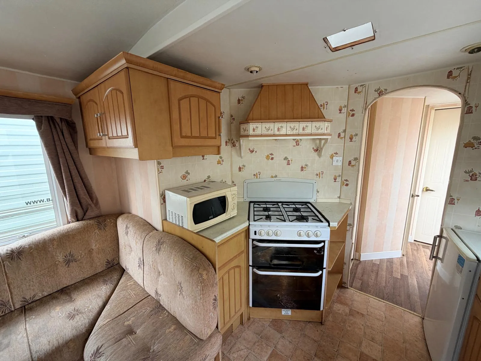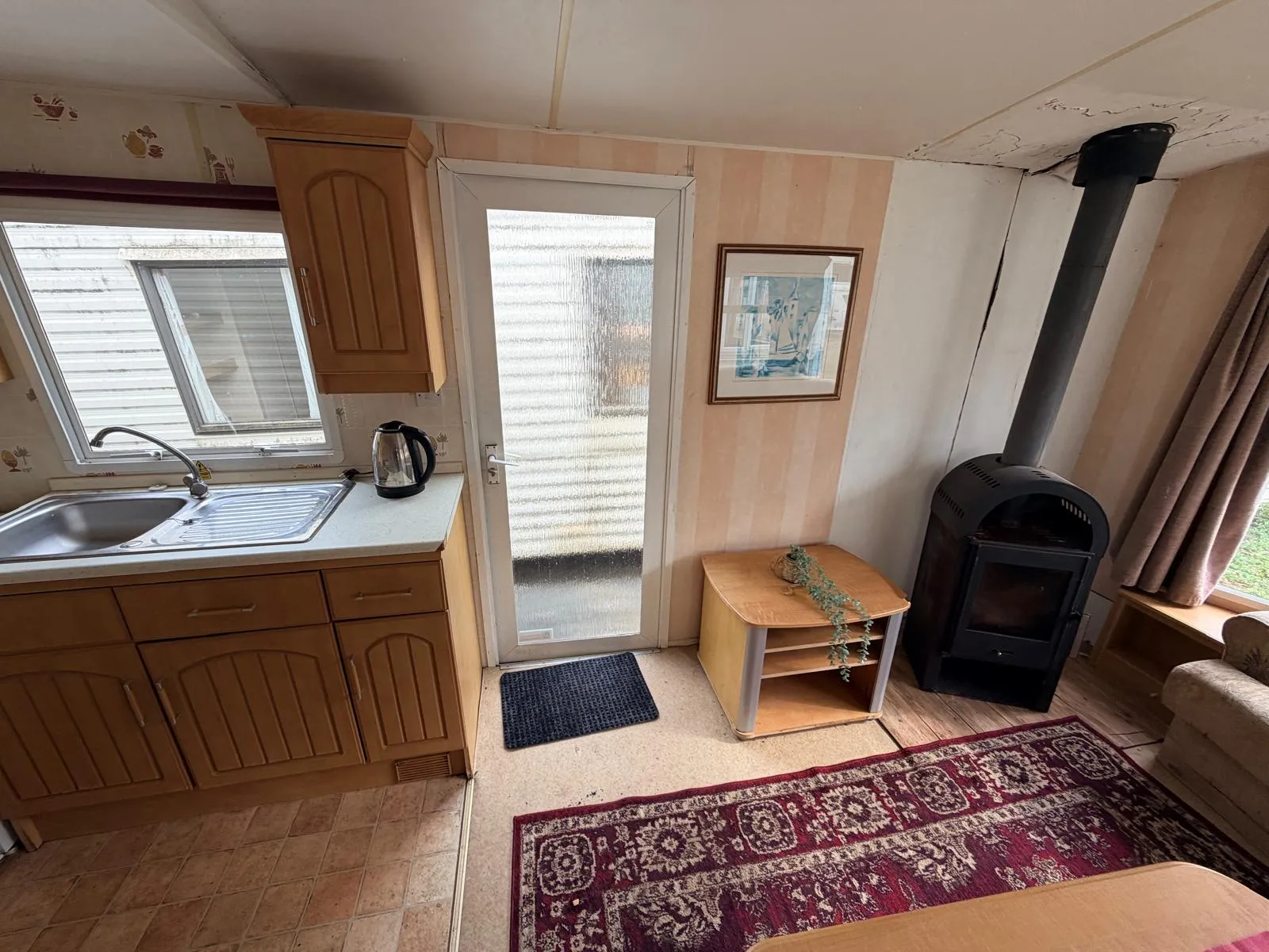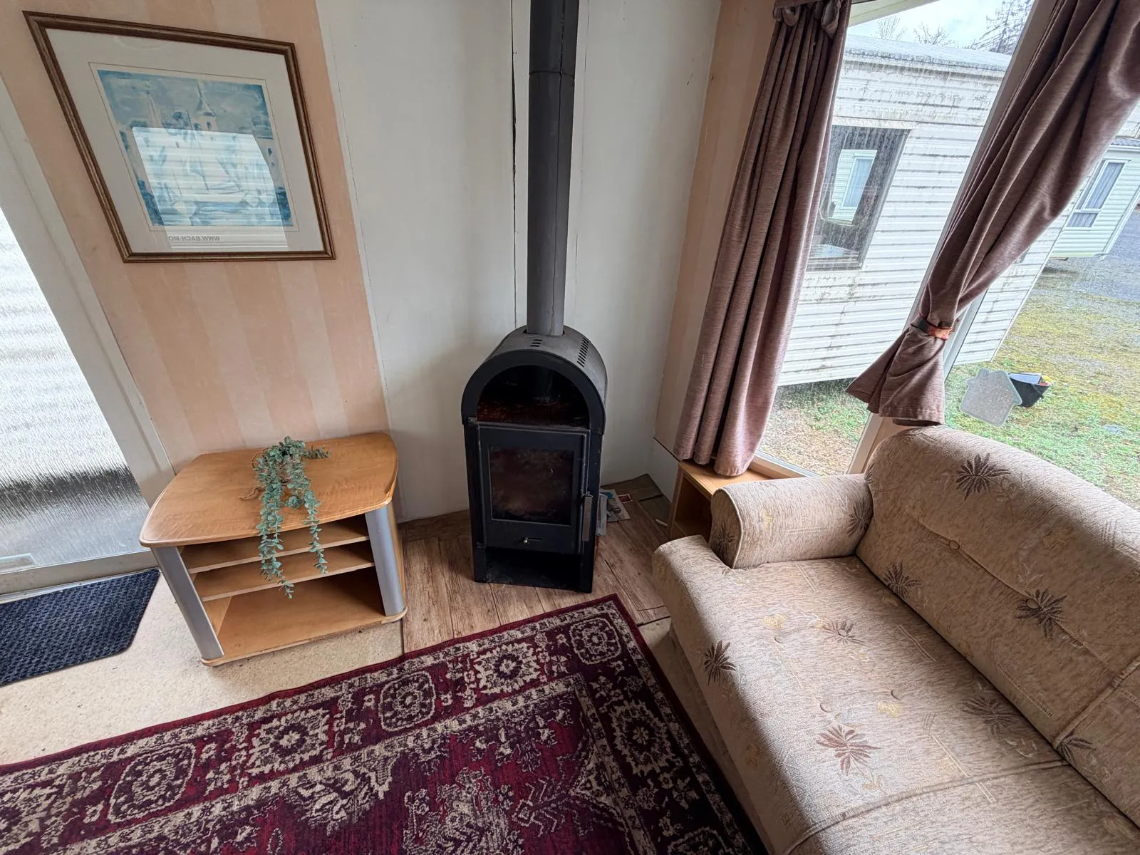 Zachovalý mobilní dům Atlas Moonstone o dispozici 3+kk nabízí příjemné a praktické bydlení. Dominantou domu je prostorný obývací pokoj se zvýšeným stropem a sedlovou střechou, který je propojený s jídelním koutem a kuchyní. O tepelný komfort se starají kamna na dřevo, která dodávají interiéru útulnou atmosféru. Dům má dva vchody, z toho jeden přímo do obývací části. Kuchyně je vybavena PB troubou, dřezem a lednicí. Na jedné straně domu se nachází hlavní ložnice s dvojlůžkem, na druhé straně je dětský pokoj se dvěma lůžky. Součástí domu je také koupelna se sprchovým koutem a WC. Celkově jde o velmi příjemný a zachovalý mobilní dům vhodný k rekreaci i pohodlnému sezónnímu užívání.