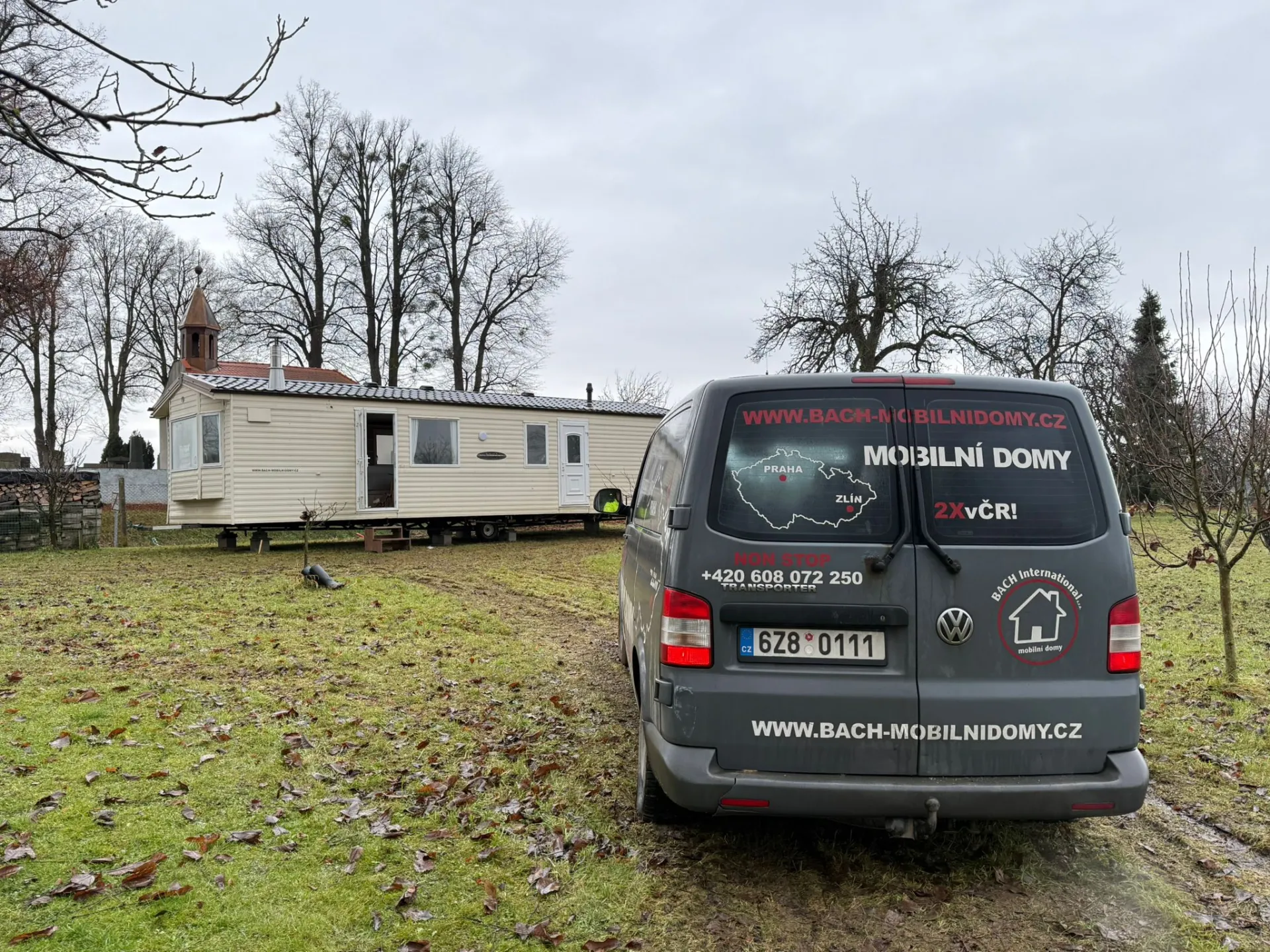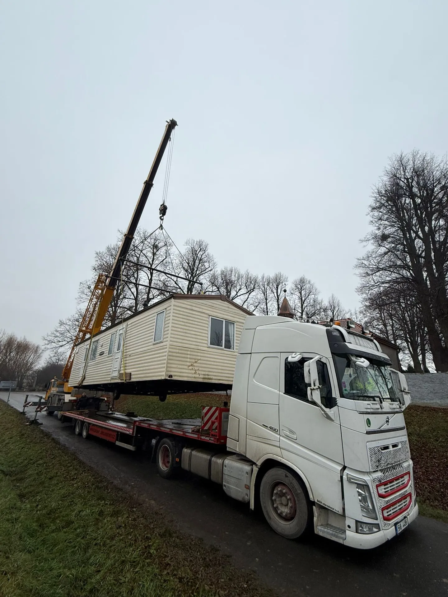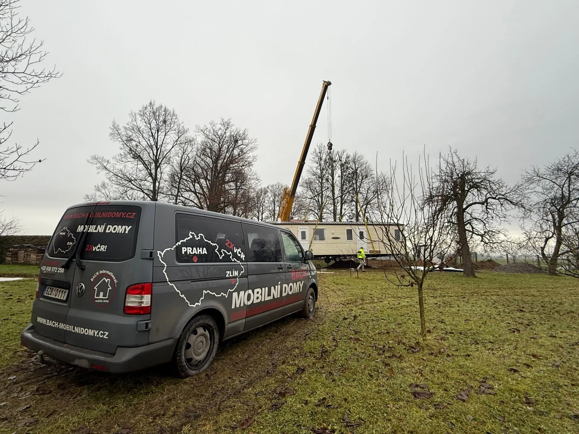 Další mobilheim dorazil až na místo – s asistencí jeřábu Liebherr precizně usazený a rovnou i s montáží kamen, takže je nachystáno na zimu. Na chvíli jsme se soupravou zapadli, ale všechno dobře dopadlo. Týmu BACH International Plus patří velká pochvala za skvěle odvedenou práci.